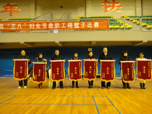 广大教职工积极参与,学校领导高度重视,徐求真副书记亲自来到比赛现场为大家鼓劲加油并颁奖,许多学院党政领导亲自带队参加比赛,各分工会主席和众多男同志也前来助兴加油。比赛过程精彩不断,笑声与喝彩声此起彼伏,尽管大家的水平参差不齐,但是大家都表现出了奋勇争先的体育竞技精神,纷纷踢出了自己的看家本领,让五彩的毽球在空中飘逸地飞舞着,机电学院的一位老师以单人790个的好成绩获得了全场的喝彩。