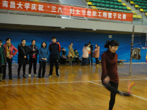,乍暖还寒,室内体育馆内人头攒动、处处洋溢着暖暖的春意。为庆祝“三八国际劳动妇女节,让广大女教职工放松身心,促进交流,过一个健康快乐、温馨和谐的节日,36日下午,工会组织开展一场别开生面的踢毽子比赛。