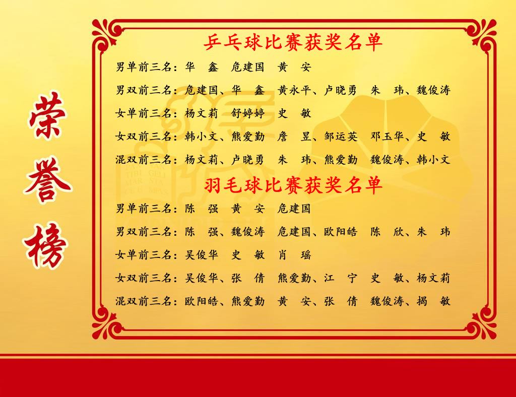 乒乓球、羽毛球比赛获奖名单